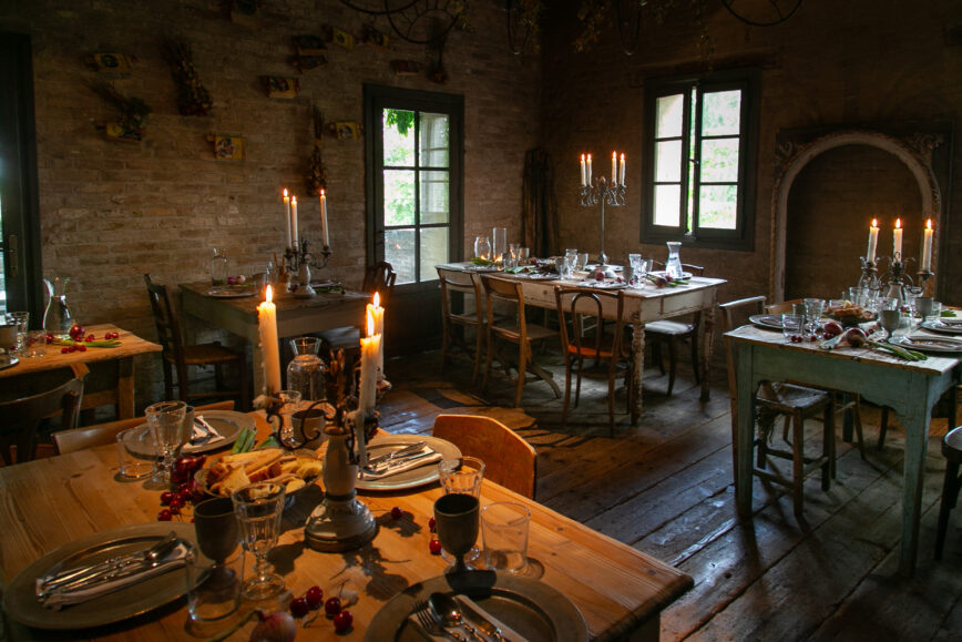 La luce soffusa delle candele, i profumi delle erbe aromatiche e il suono dell’acqua che scorre accanto al vecchio mulino aggiungono un tocco di magia.